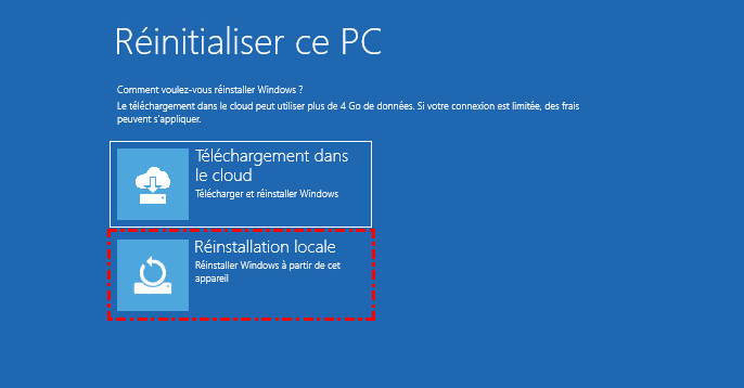 Étape 3. Choisissez « Réinstallation locale » pour réinstaller Windows sur cet appareil.