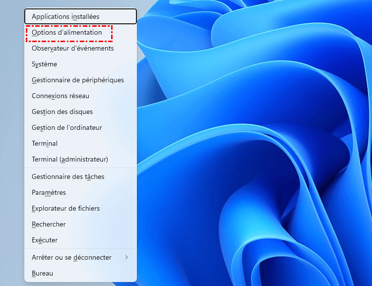 Étape 1. Faites un clic droit sur le bouton Démarrer et sélectionnez "Options d'alimentation".