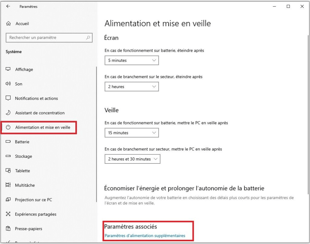 Étape 2. Dans la fenêtre "Alimentation et mise en veille" qui s’ouvre, choisissez "Paramètres d'alimentation supplémentaires".