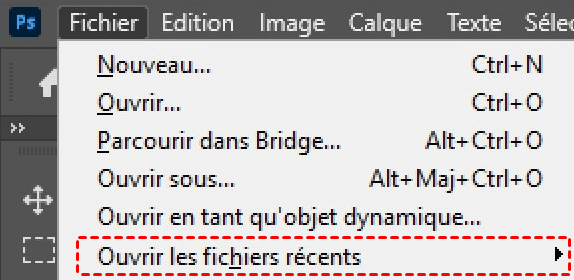 Photoshop conserve automatiquement un historique de vos fichiers les plus récents, vous permettant de les rouvrir facilement après un plantage du système ou une fermeture accidentelle.