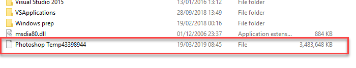 Parfois, Photoshop enregistre des fichiers temporaires dans le dossier Temp. Lorsque Photoshop plante, des fichiers temporaires peuvent encore exister sur votre système. Recherchez les fichiers liés à Photoshop se terminant par un nombre aléatoire.