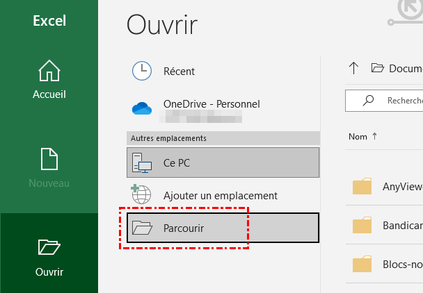 Étape 1. Ouvrez votre application Microsoft Excel. Cliquez ensuite sur Ouvrir > Autre emplacements > Parcourir.