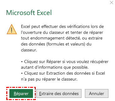 ✅Réparer avec la fonctionnalité intégrée dans Excel