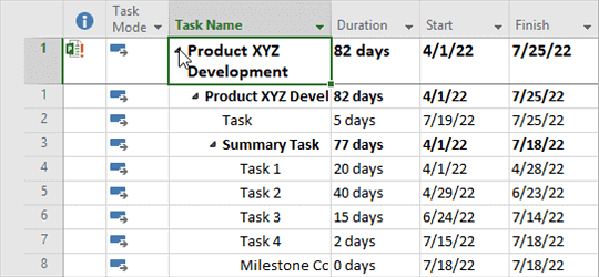 Étape 3. Développez le planning pour vérifier l'importation de toutes les tâches.