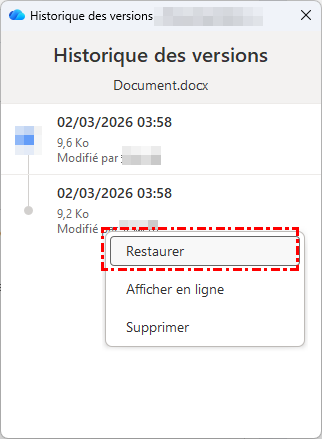✅Récupérer une Version Antérieure depuis un Lecteur Cloud