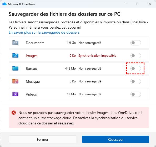 ⭕ Problèmes de synchronisation OneDrive : Les fichiers stockés uniquement dans le cloud peuvent sembler avoir disparu si OneDrive prend le contrôle de votre bureau.