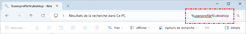 Pour localiser votre dossier Bureau, veuillez vérifier les chemins ci-dessus pour trouver votre dossier Bureau, ou suivez les étapes suivantes pour le trouver dans votre profil utilisateur :