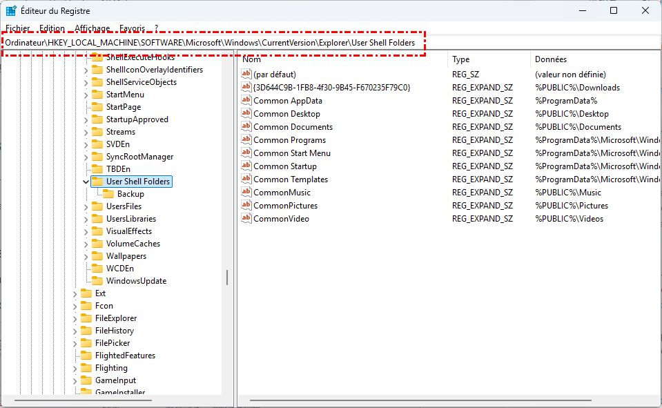 Parfois, Windows modifie l'emplacement du dossier. Réinitialisons-le :