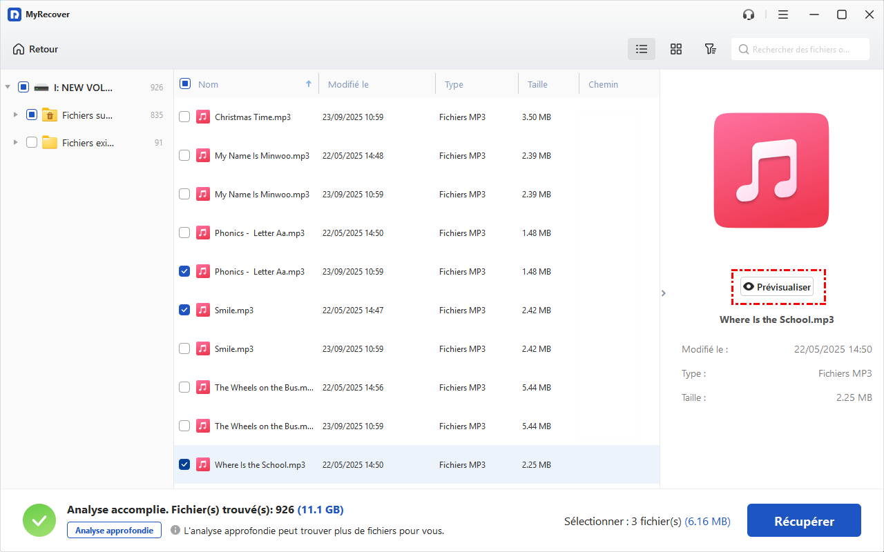 Ensuite, laissez-moi vous guider à travers le processus étape par étape à l'aide de MyRecover afin de maximiser vos chances de restaurer les fichiers perdus :