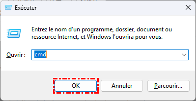 Étape 1. Appuyez sur Windows+R pour activer la commande Exécuter. Dans le champ vide, tapez cmd et appuyez sur Entrée.