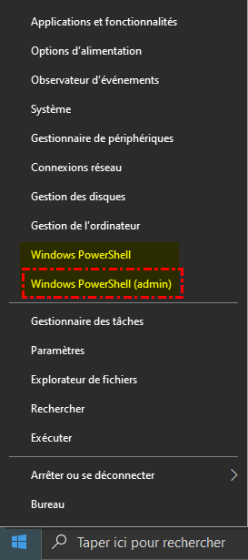 Étape 1 : Appuyez sur « Win + X », puis sélectionnez « Windows PowerShell (admin) ».