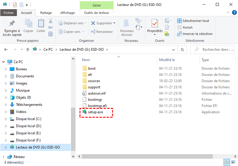 Étape 2. Faites un clic droit sur le fichier ISO et sélectionnez Monter, puis lancez setup.exe.