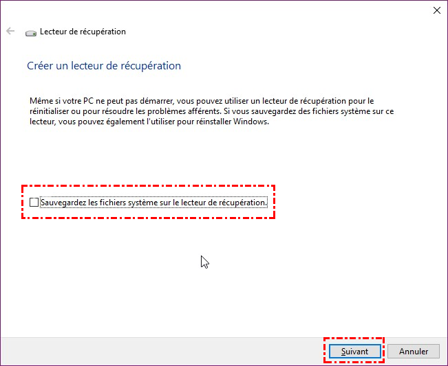 - Sauvegarde d'image système : Utilisez un lecteur de récupération ou un support d'installation pour démarrer en mode de récupération et sélectionnez « Récupération d'image système ».