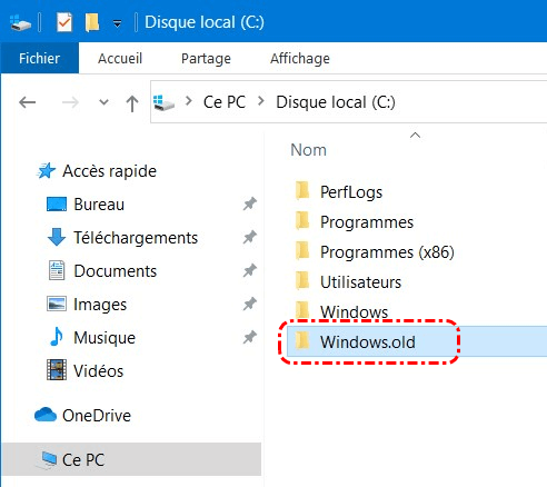 Lors de la mise à niveau, Windows crée automatiquement une sauvegarde de votre ancien système d'exploitation (Windows 10) dans un dossier nommé « Windows.old ». Ce dossier conserve les fichiers de votre ancien système jusqu'à 10 jours.