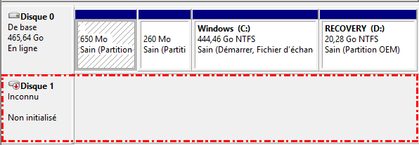 Lorsqu'un disque apparaît comme « Inconnu » et « Non initialisé », cela signifie que Windows n'a plus accès à la structure de la partition et que tous les fichiers présents sur le disque sont invisibles et inaccessibles. Dans ce cas, vous ne pourrez ni ouvrir le disque, ni lire son contenu, ni même lui attribuer une lettre.
