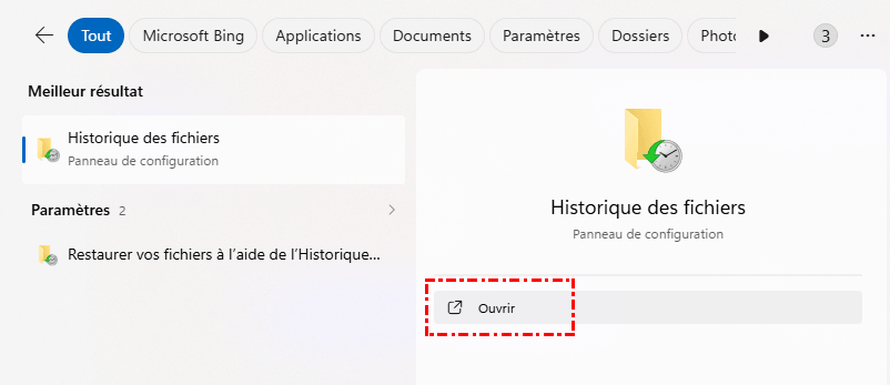 Méthode 2. Utiliser l'historique des fichiers (si la Sauvegarde Windows est activée)