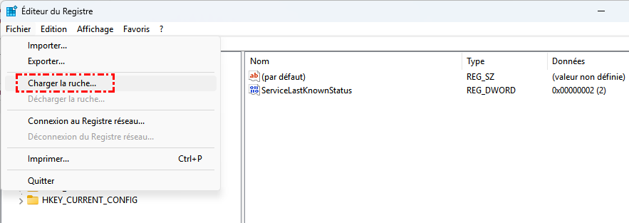 Dans ce cas, vous devez charger manuellement le registre du disque externe, car il n'est pas actif.