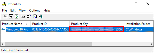 Étape 2. Exécutez ProduKey en tant qu'administrateur. Le logiciel analysera automatiquement votre système et affichera votre clé de produit Windows.