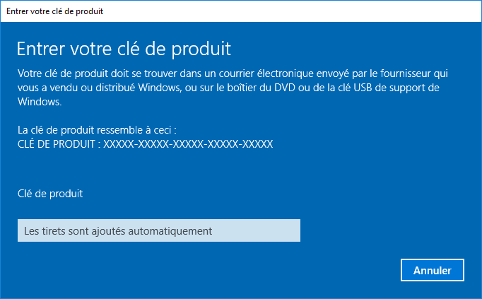 Clé de produit Windows 10