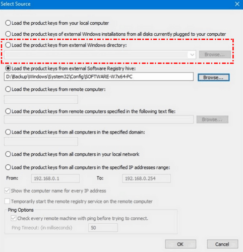 Étape 3. Sélectionnez une option pour analyser les systèmes Windows externes (ex . Load the product keys from external Windows directory)