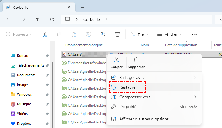 Méthode 2 : Restaurer depuis la Corbeille