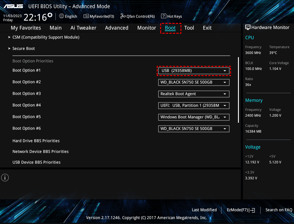 Étape 4. Localisez la liste des périphériques de démarrage (par exemple, SSD, disque dur, USB, CD/DVD). Sélectionnez le périphérique à partir duquel démarrer en premier. Suivez les instructions à l'écran (souvent +, - ou F5/F6) pour déplacer votre périphérique de démarrage préféré en haut de la liste.