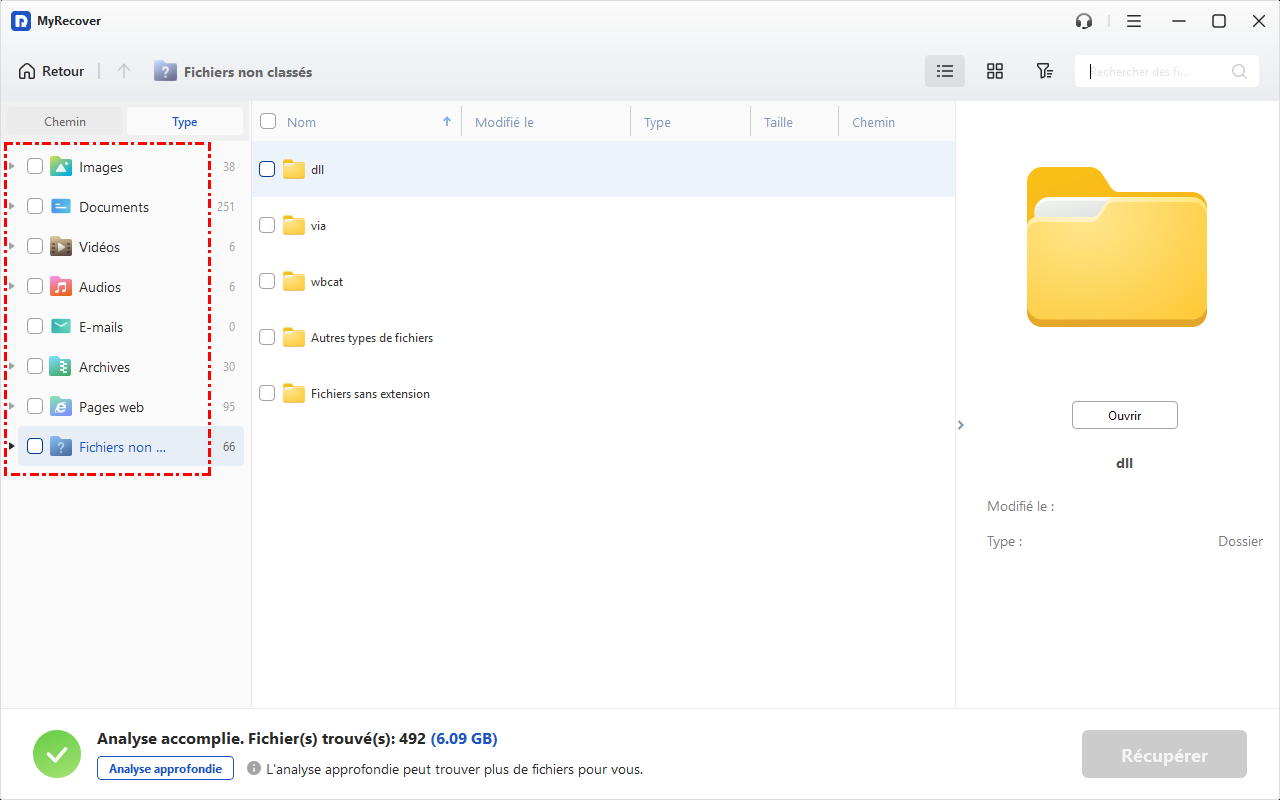Étape 3. Parcourez les fichiers récupérables par type après l'analyse. Prévisualisez-les et sélectionnez ceux à récupérer.