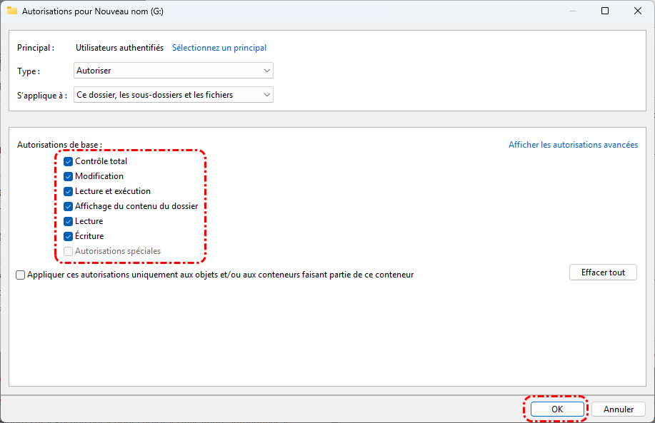 Étape 4. Cochez l'option « Contrôle total » et cliquez sur « OK ».