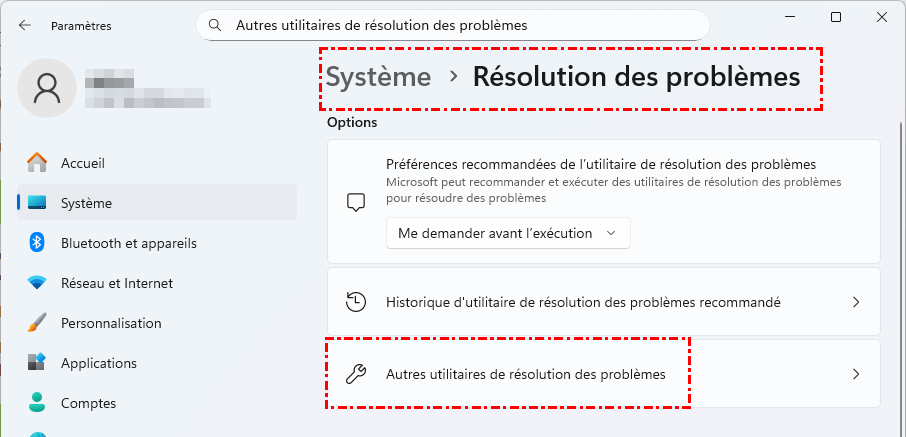 Étape 1. Allez dans « Paramètres » > « Système » > « Résolution des problèmes ».