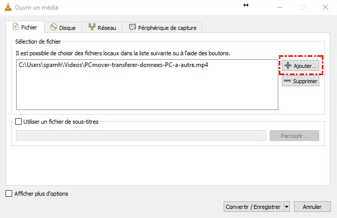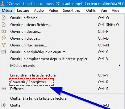 Dans le menu supérieur, cliquez sur Média puis sur Convertir/Enregistrer…(raccourci clavier : Ctrl+R).