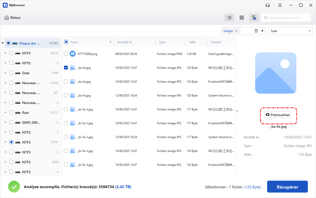 - Fonction de prévisualisation : Vérifier les fichiers avant la récupération.