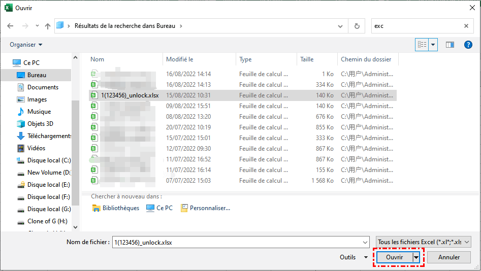 3. Ouvrez-les avec Excel pour vérifier leur contenu.