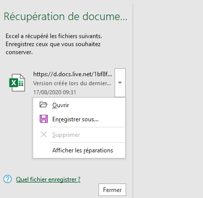 2. Comment puis-je récupérer un fichier Excel temporaire ?