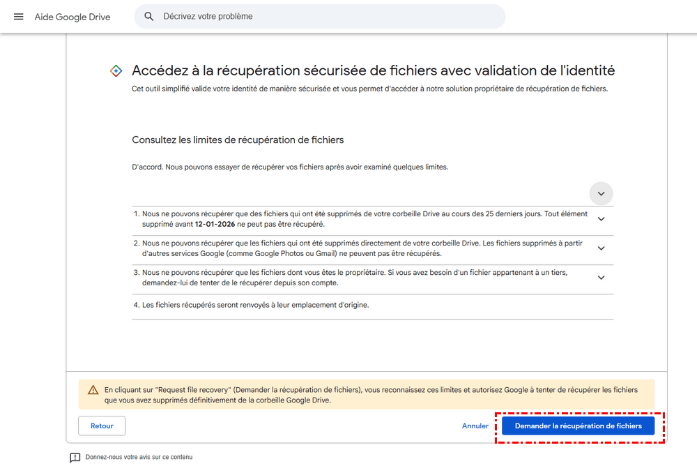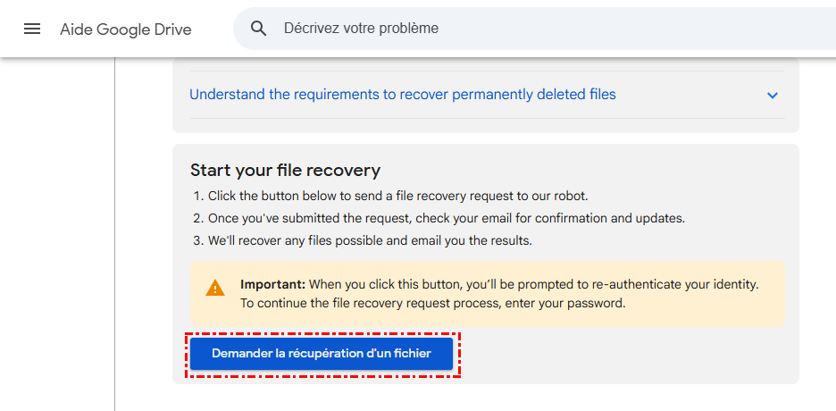 Si toutes les autres méthodes échouent, vous avez peut-être encore une chance de les récupérer en soumettant une demande de récupération de fichiers directement à Google. Cette option est particulièrement utile pour les utilisateurs de Google Workspace (anciennement G Suite), mais dans certains cas, elle peut aussi fonctionner pour les comptes individuels.