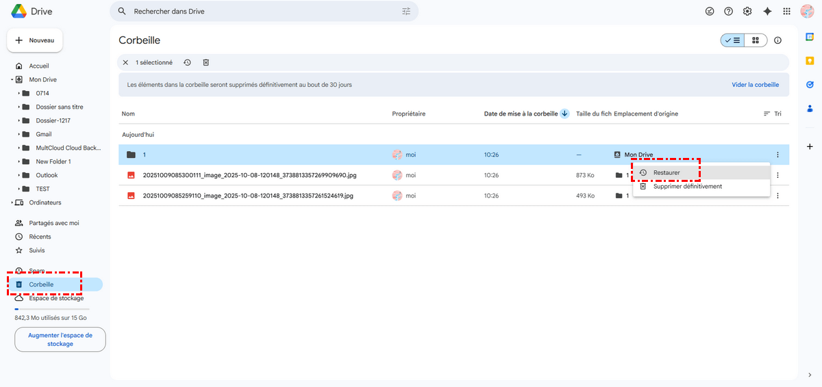 A. Restaurer des fichiers Google Drive récemment supprimés depuis la Corbeille