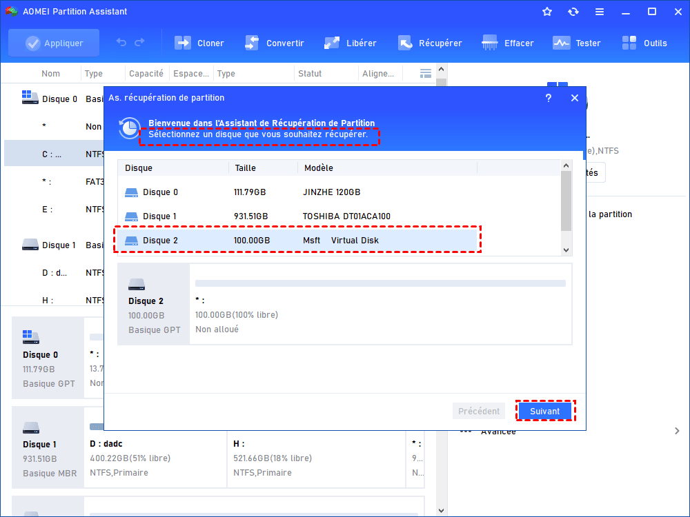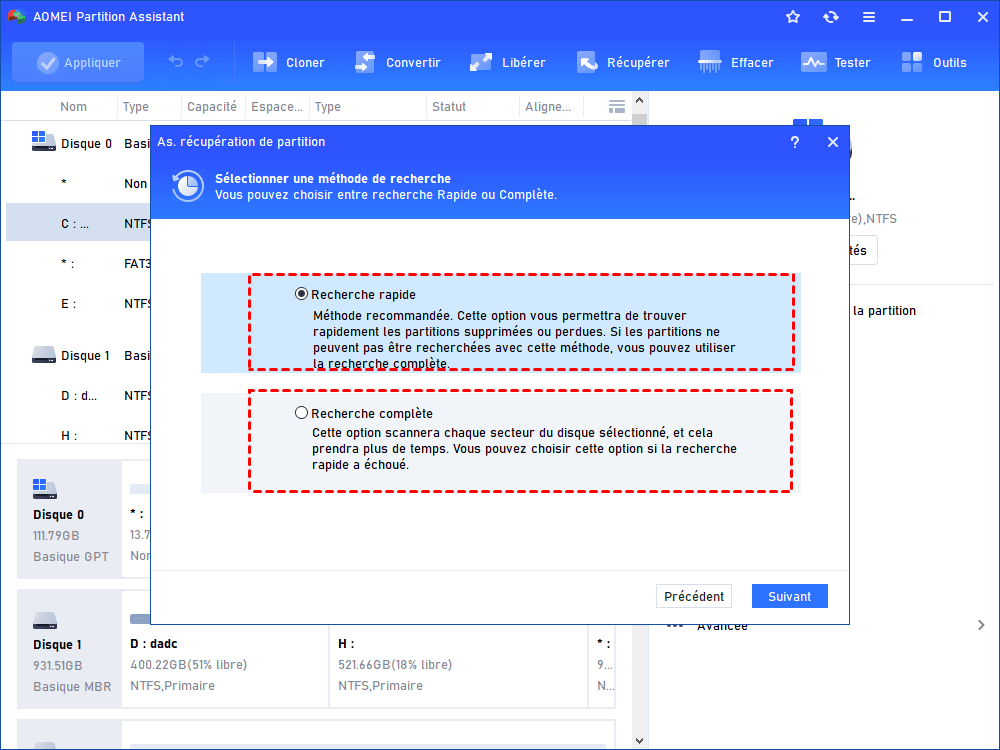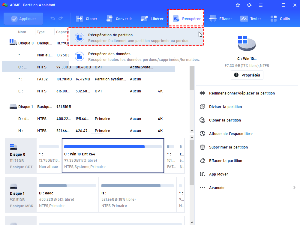 Méthode 3. Récupérer une partition suppriméeavec AOMEI Partition Assistant