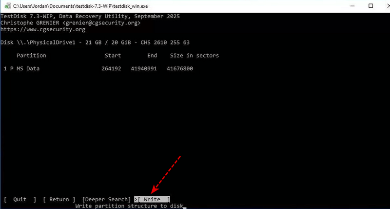 Étape 4 : Une fois la partition trouvée, sélectionnez-la et choisissez Écrire pour la restaurer.