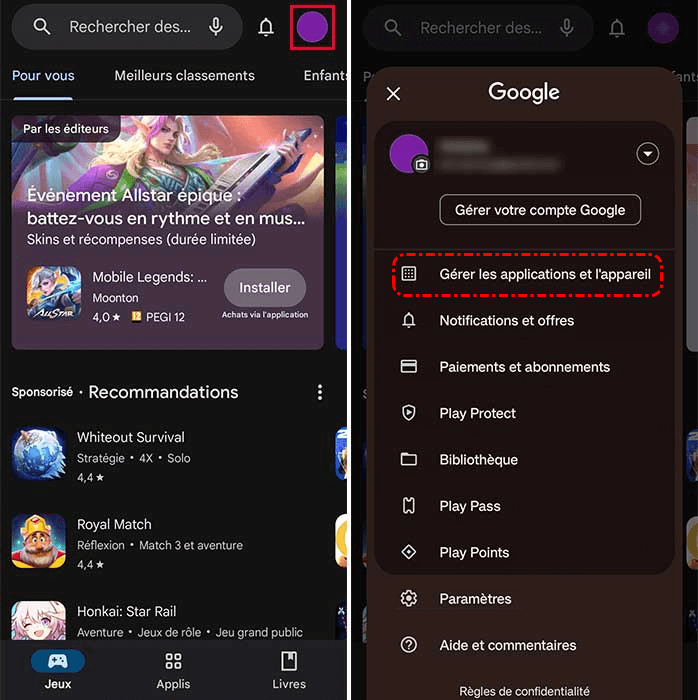 Restaurer des jeux supprimés sur Android