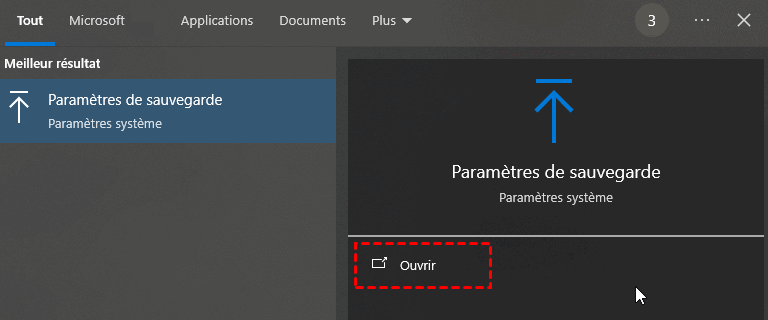 Étape 1. Tapez « Paramètres de sauvegarde » dans le menu Démarrer et ouvrez-le.