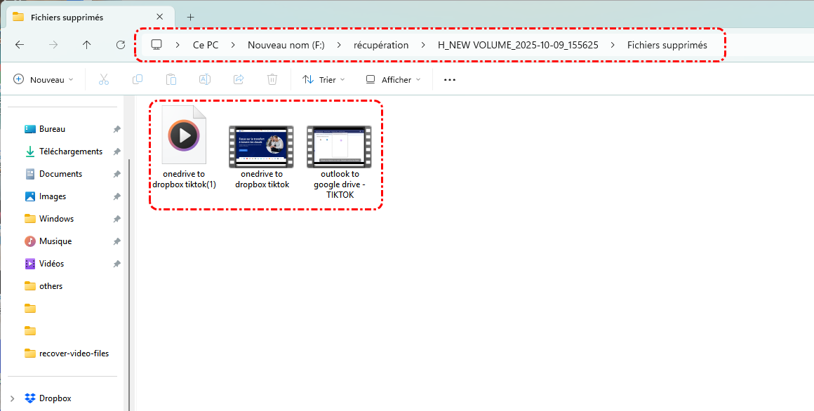 Une fois la récupération terminée, vous pouvez accéder au dossier de destination pour vérifier si les vidéos peuvent être lues normalement.