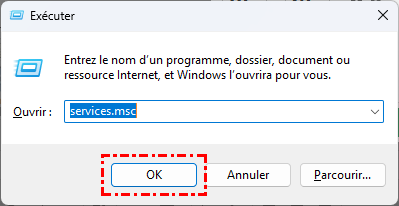 Étape 1. Ouvrez la console « Services » en appuyant sur « Win + R », en saisissant « services.msc » et en appuyant sur Entrée.