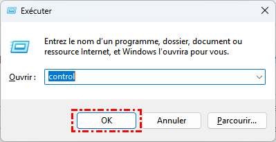 1. Appuyez sur les touches « Win + R », saisissez « control » et appuyez sur « Entrée ».
