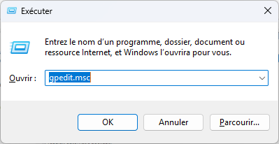 1. Appuyez sur « Win + R » pour ouvrir la boîte de dialogue Exécuter. Tapez exactement : « gpedit.msc » et appuyez sur Entrée ou cliquez sur « OK ». Saisissez les informations d’identification d’administrateur si vous y êtes invité.