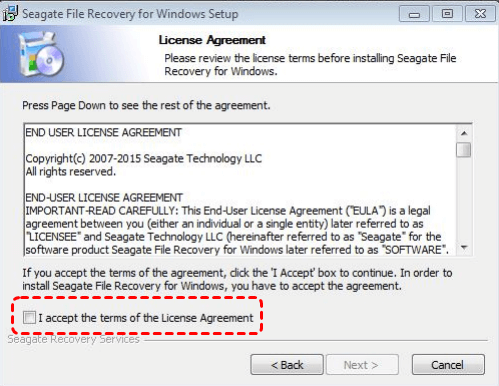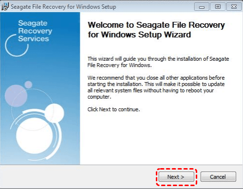 Étape 1. Double-cliquez sur installer.exe. Cliquez sur « Suivant » dans la fenêtre d'installation de Seagate File Recovery for Windows.