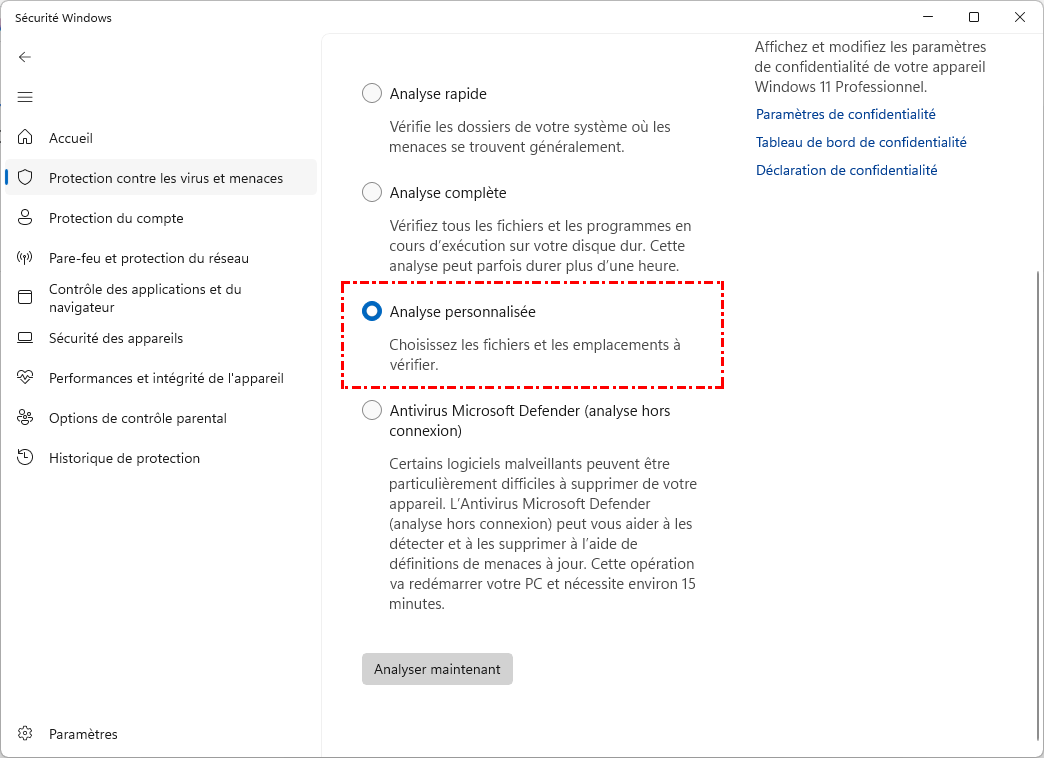 Étape 4. Sélectionnez "Analyse personnalisée", puis cliquez sur "Analyser maintenant".