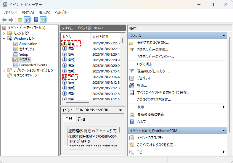 Windowsは、ハードウェアエラーを含むすべてのシステム活動のログを保持しています。イベントビューアーでデバイスエラーの詳細情報を確認できます。