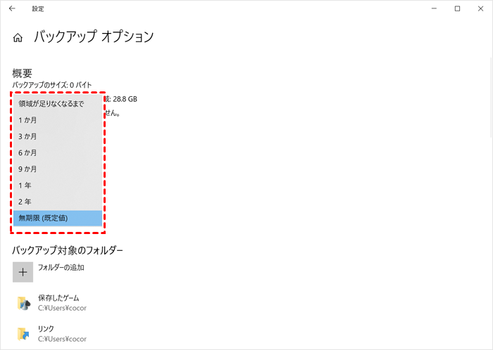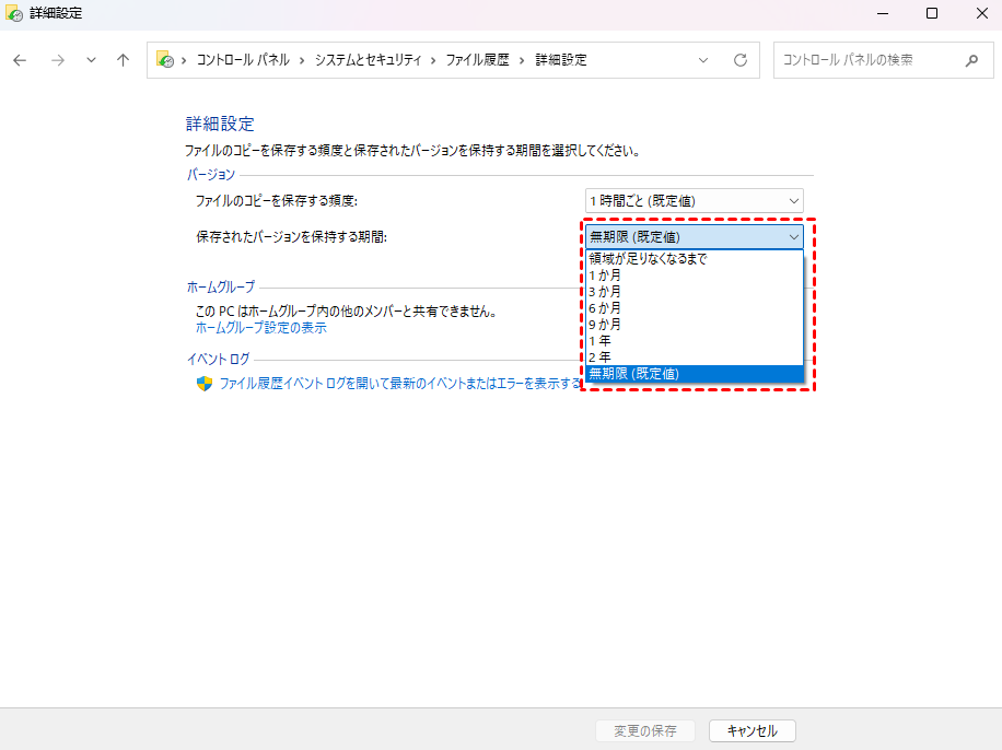ファイル履歴のバージョンはどのくらい保存されるのか?