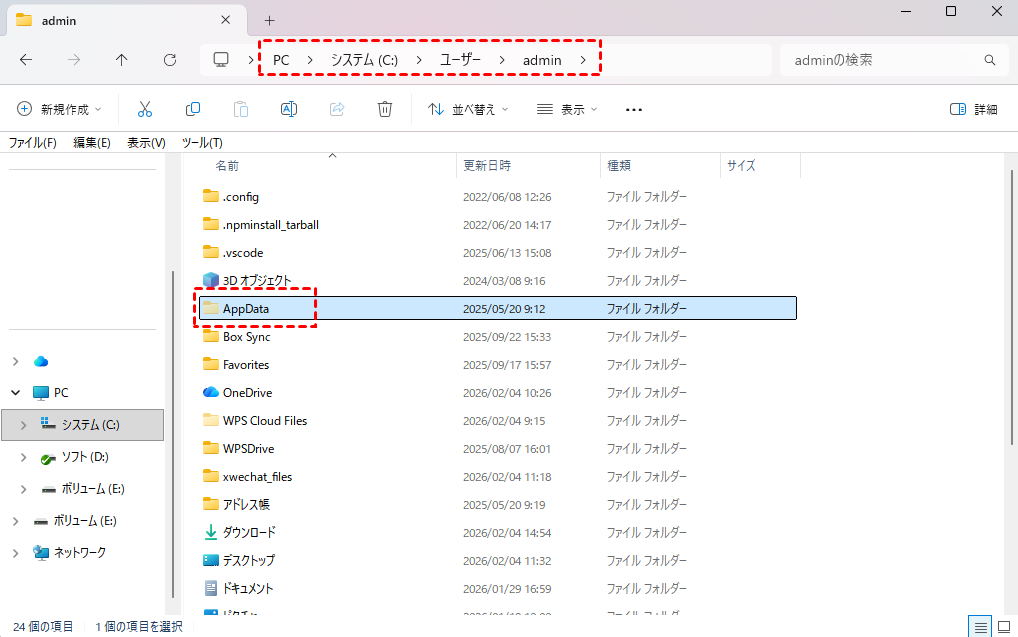 🔔隠しファイルとフォルダ:AppDataフォルダは、重要なユーザーデータを保護し、偶発的な変更を防ぐために、デフォルトで隠されています。設定を変更しない限り、ユーザーはエクスプローラーでそれを見ることができないかもしれません。