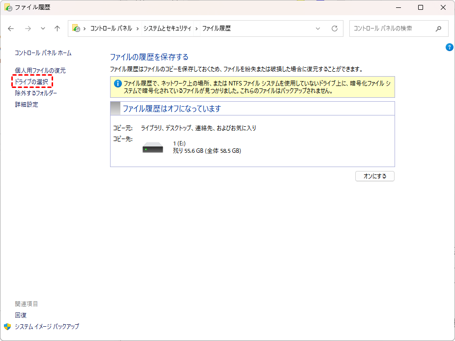 ✅「Windows ファイル履歴」によるバックアップ