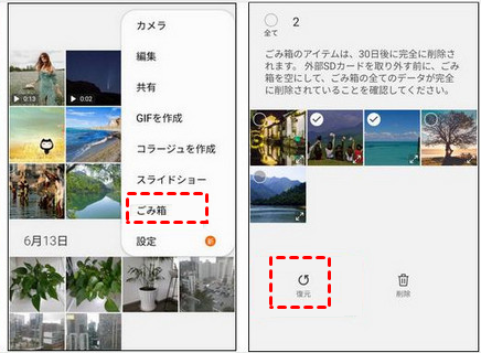 ステップ 4:復元したいファイルを選択し、「復元」をタップします。写真と動画はDCIMフォルダに戻り、ギャラリーに再表示されます。